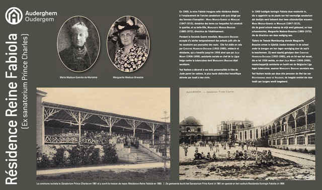 En 1969, la reine Fabiola inaugura cette résidence établie à l’emplacement de l’ancien sanatorium créé puis dirigé par des femmes d’exception : MARIA MADOUX-GOMRÉE DE MORIALMÉ (1847-1915), donatrice des terres sur lesquelles fut construit le quartier, et sa belle-fille, MARGUERITE MADOUX-BRASSINE (1885-1972), directrice de l’établissement.
